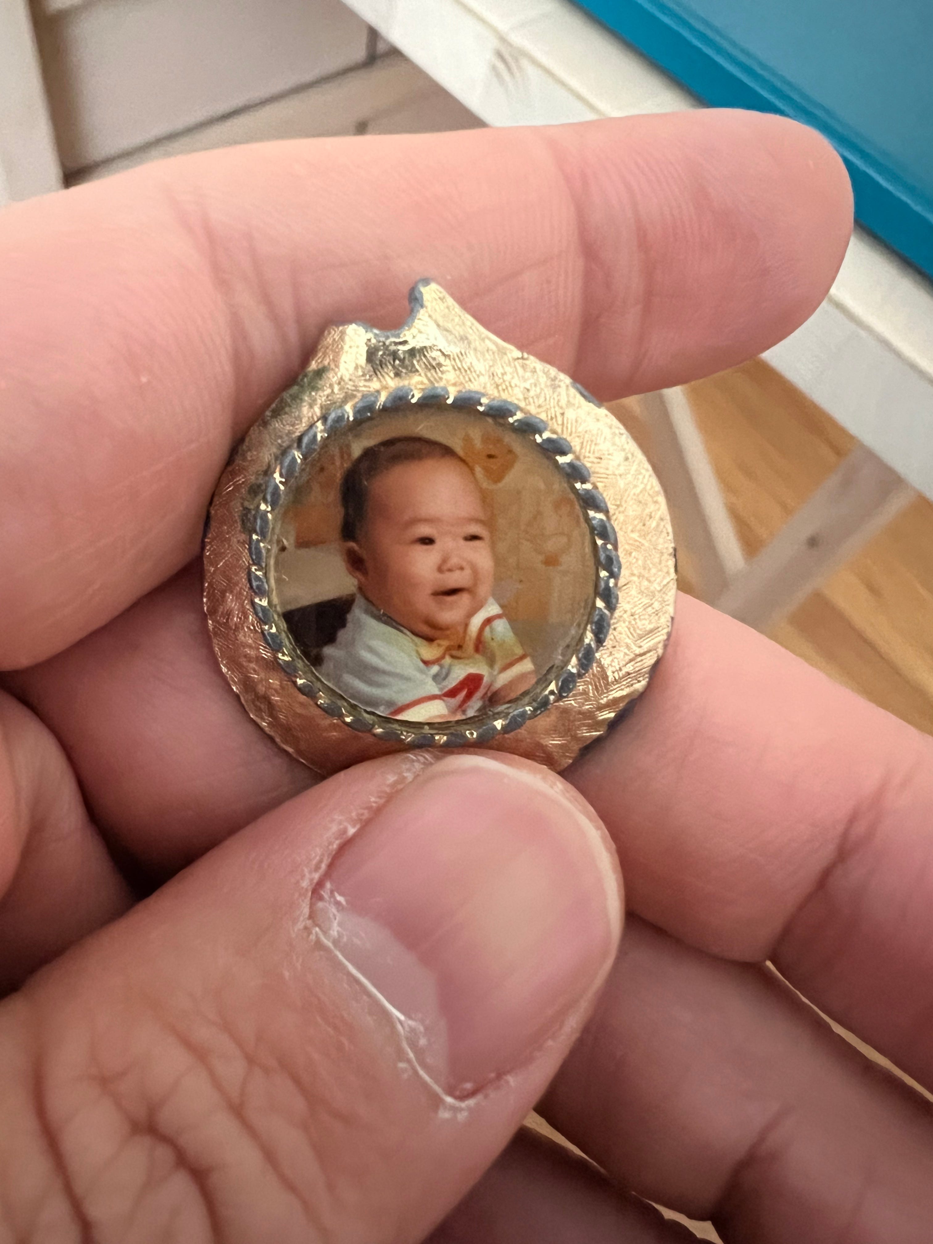 Just found this cameo of little baby me in a box of old coins my dad collected. It’s something I remember seeing throughout childhood, and happily surprised to find amongst the few of my father’s things we still have, jingling between a flattened penny, buffalo nickels, and commemorative quarters.